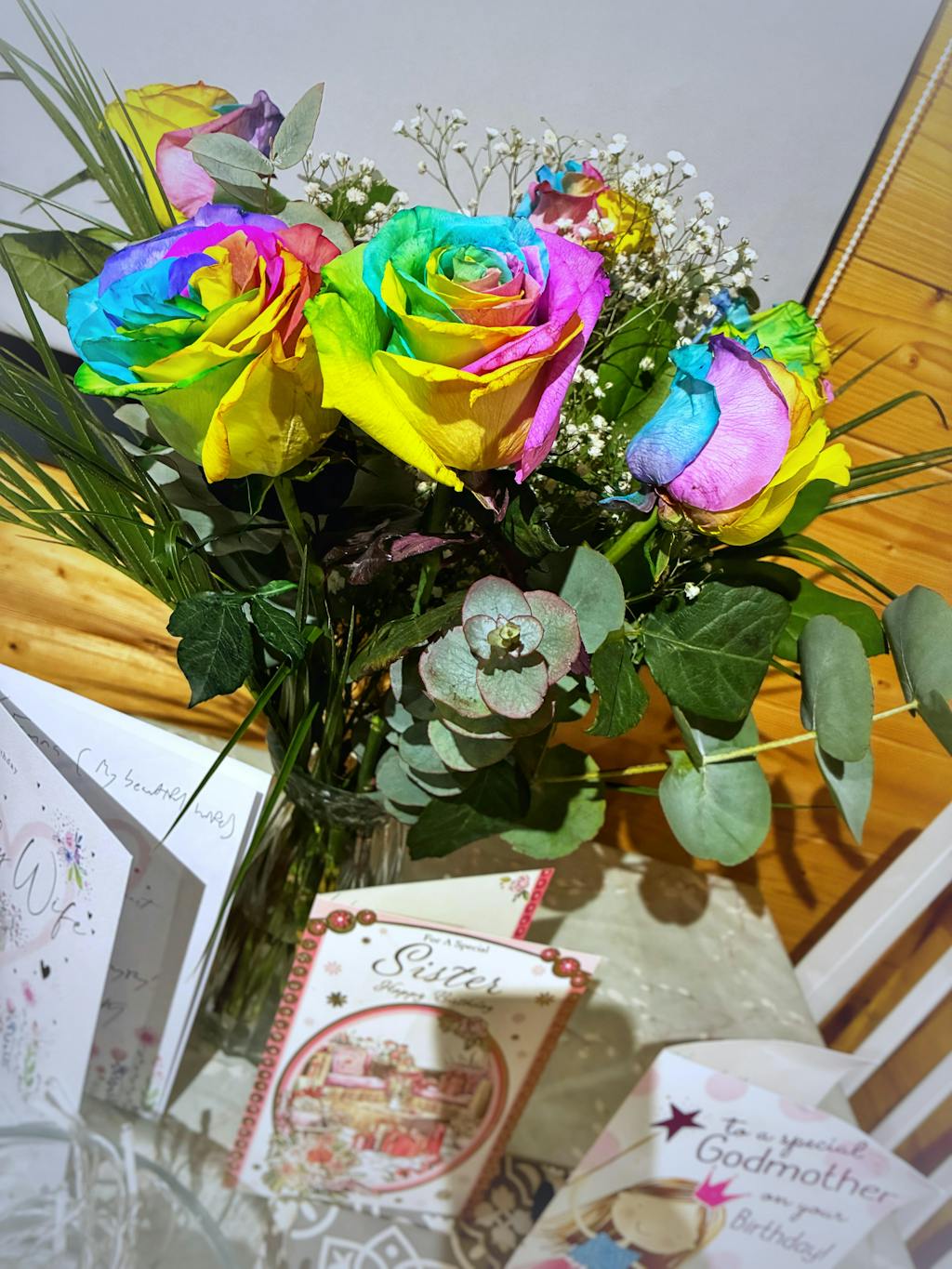 • A vibrant mix of hand-selected rainbow roses